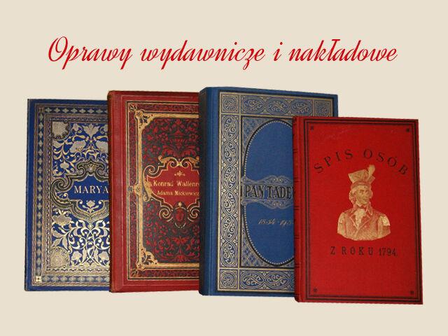 Do połowy XIX wieku polskie nakłady książkowe wywożowno do Wiednia lub Lipska celem nadania im pięknych opraw wydawniczych, dopiero w drugiej zaczęto do Polski sprowadzać maszyny, które pozwoliły rodzimym wydawcom nadać książkom płócienne bogato tłoczone i złocone okładki.